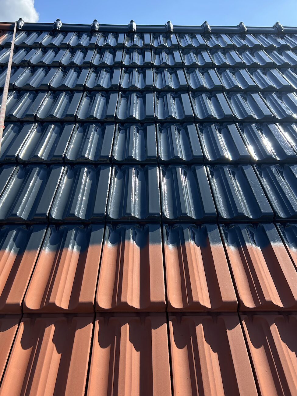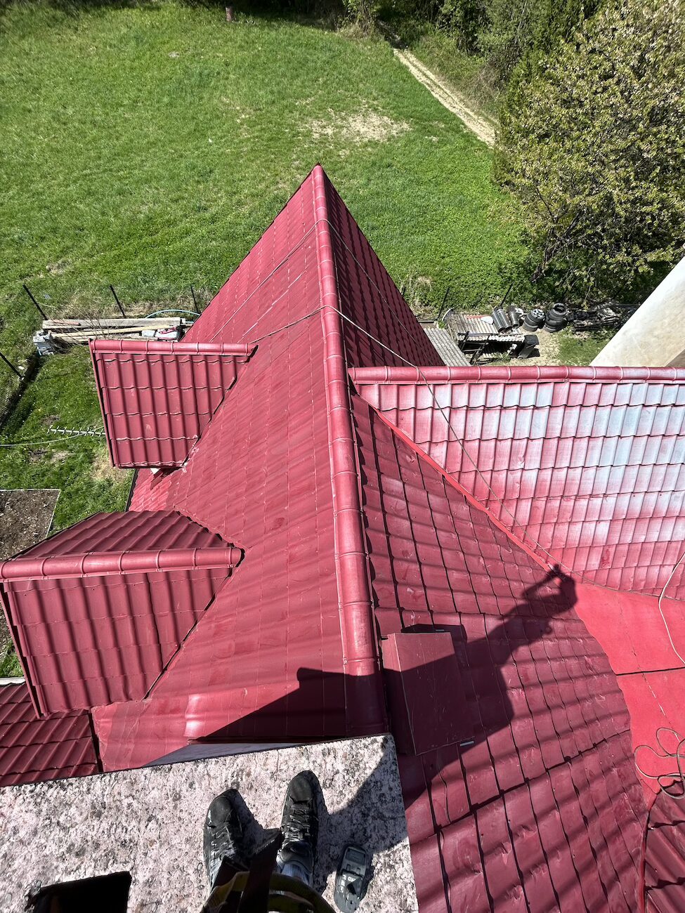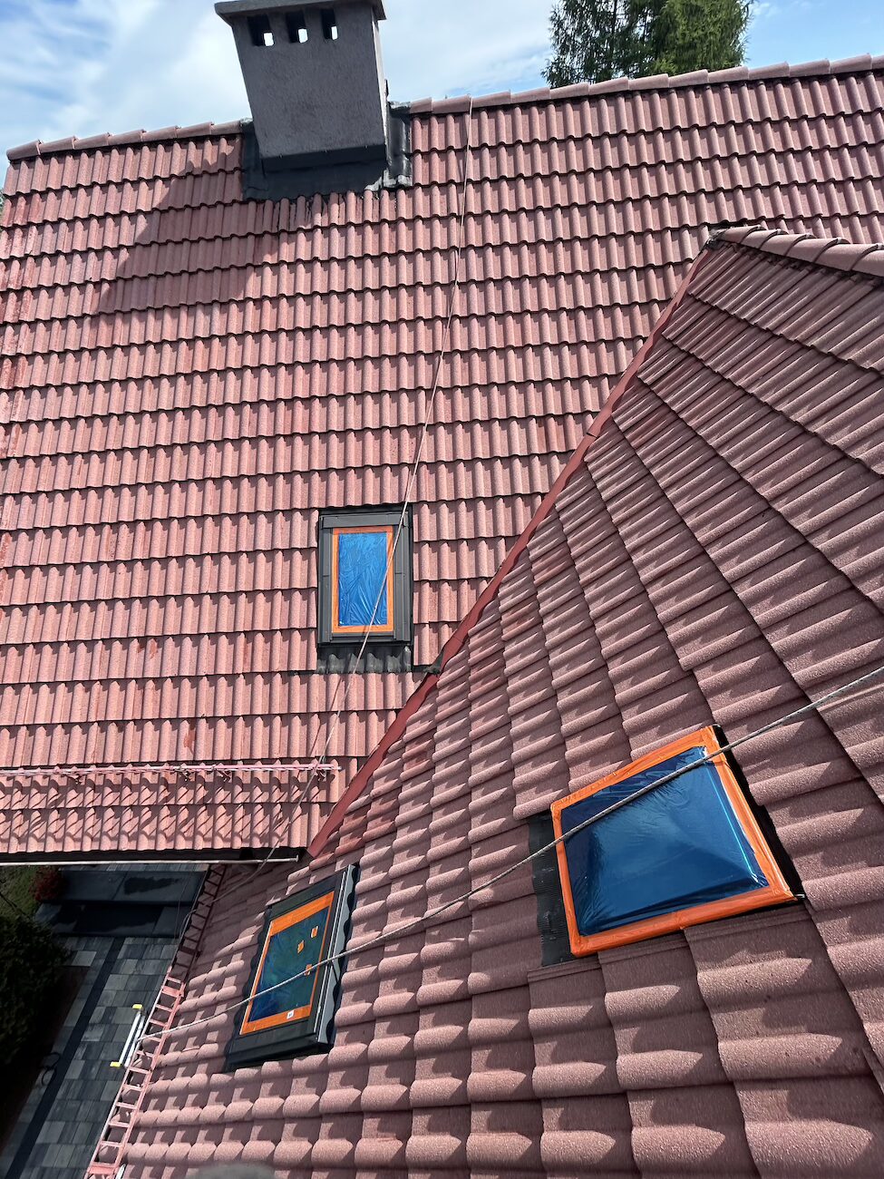 Dachówka ceramiczna, betonowa, blacha, blachodachówka – malujemy natryskowo. Pracujemy na wysokościach metodami alpinistycznymi.